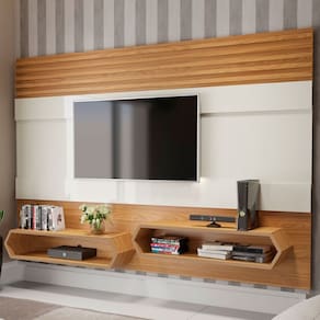 O(a) Painel para TV Até 65 Polegadas Colméia Off White/Freijó - Loja é produzido em MDF na escala de brilho Brilho e Fosco, e possui um grau de dificuldade de montagem: Médio.