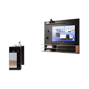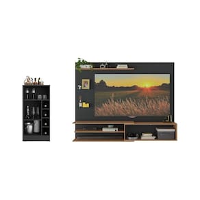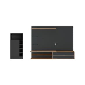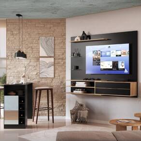 Produzido em MDP 15mm com acabamento acetinado (cerca de 20% de brilho), este conjunto garante durabilidade e resistência. O painel acomoda TVs de até 65 polegadas (suporta até 30kg) e conta com espaçamento para passagem de fios, oferecendo um visual limpo e elegante.
