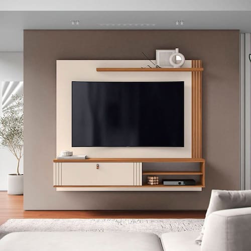 O home suspenso laredo 1.6, chegou para inovar o seu ambiente. com detalhe delicado de vincos finos em um lado do painel, porta basculante em mdf com usinagem que possui vincos finos em cada lado dela. com puxador de poliestireno que assemelha a couro natural. possui também nichos, perfeitos para acomodar seus objetos preferidos, uma prateleira superior de 25cm para a sua decoração desejada. deixando-o ainda muito mais aconchegante para a sessão de filme em família, suporta tv de até 65“. Produto Montado: Sim Acabamento: Pintura UV Acabamento da Porta: Pintura UV Acabamento da Prateleira: Pintura UV Ambiente Principal: Sala de Estar codigo_ean: 7900288089540 Complexidade da Montagem: Alta: deve ser montado por um montador especializado Cor: Pérola Metalizado/Cinamomo Mel Cor do Produto: Pérola Metalizado/Cinamomo Mel Cor Interna: Pérola Metalizado/Cinamomo Mel Escala de Brilho: Semi-Brilho Escala de Brilho da Porta: Semi-Brilho Escala de Brilho da Prateleira: Semi-Brilho Ideal para TVs até (Polegadas): 65 Informações Complementares: Puxador de poliestireno que assemelha a couro natural, porta basculante com pistão a gás em mdf com canais, tampo e prateleira de 25cm, suporta tv de até 65" Itens Inclusos: 1 Home, 1 Manual de Montagem Linha ou Coleção: Living Manual de Montagem e Instalação: https://product-hub-prd.madeiramadeira.com.br/981228/documents/6fe3bd58-c555-42b2-b53f-9ab2208081e92742395277817418755493236.pdf Marca: Mobler Material da Porta: MDF Material da Prateleira: MDP Material do Puxador da Porta: Poliestireno Material Principal: MDF Necessita Montagem: Sim Origem do Produto: Nacional Painel para TV Integrado: Não Peso: 51,3 kg Peso Máximo por Prateleira: 3 kg Possui Espelho: Não Possui iluminação: Não Possui Nichos: 01 Possui Passa Cabos: Sim Possui Pés: Suspenso Possui Portas: Sim Possui Prateleiras: Sim Possui Vidro: Não Quantidade de Nichos: 01 Recomendações de Uso, Manutenção e Limpeza: Para conservar a aparência e a durabilidade do produto: - Utilizar pano macio e úmido; - não usar solventes ou abrasivos Sistema de Montagem: Parafusos, Cavilhas, Pregos Suporte de TV Universal Incluso: Não Tipo de Dobradiça/Corrediça da Porta: Metálica Tipo de Puxador da Porta: Externo