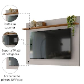 MARCA: Notável COR : Off White / Freijó ALTURA :128,20 cm LARGURA: 180 cm PROFUNDIDADE :20,30 cm PESO : 29,66 kg MATERIAL DA ESTRUTURA: MDP ESPESSURA DO MATERIAL DA ESTRUTURA : 15 e 25 mm TIPO DE PINTURA : UV ACABAMENTO: Fosco NÚMERO DE PRATELEIRAS: 1 PESO MÁXIMO SUPORTADO PELAS PRATELEIRAS: 5 kg IDEAL PARA TV DE ATÉ : 70 Polegadas PESO MÁXIMO SUPORTADO PELO PRODUTO: 25 kg DIFERENCIAIS DO PRODUTO: Prateleira , comporta TV de até 70 polegadas.