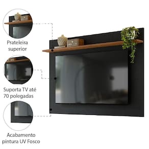 O Painel NT1305 é uma ótima escolha pra completar sua casa e atender todas às suas necessidades. Conta com uma prateleira ampla para acomodar seus objetos de decoração, comporta TV de até 70 polegadas! Feito com material de alta qualidade, dando durabilidade e resistência ao produto.MARCA: Notável COR : Preto Tx / Freijó ALTURA :128,20 cmLARGURA: 180 cmPROFUNDIDADE :20,30 cmPESO : 29,66 kgMATERIAL DA ESTRUTURA: MDPESPESSURA DO MATERIAL DA ESTRUTURA : 15 e 25 mmTIPO DE PINTURA : UVACABAMENTO: FoscoNÚMERO DE PRATELEIRAS: 1PESO MÁXIMO SUPORTADO PELAS PRATELEIRAS: 5 kgIDEAL PARA TV DE ATÉ : 70 Polegadas PESO MÁXIMO SUPORTADO PELO PRODUTO: 25 kgDIFERENCIAIS DO PRODUTO: Prateleira , comporta TV de até 70 polegadas.INSTRUÇÕES DE CUIDADOS: Para maior durabilidade, recomenda-se que a limpeza dos móveis seja feita da seguinte forma: Nas partes externas (portas, laterais e frente de gaveta) e internas, a limpeza deverá ser feita com pano limpo e levemente umedecido em água e sabão neutro. Em seguida, deverá ser passado um pano limpo e seco. AVISO: Montagem não inclusa. Entregamos até a porta de entrada da casa do cliente ou até a portaria do condomínio. ; MARCA:: Notável | COR :: Preto Tx / Freijó | ALTURA :: 128,20 cm | LARGURA:: 180 cm | PROFUNDIDADE :: 20,30 cm | PESO :: 29,66 kg | MATERIAL DA ESTRUTURA:: MDP | ESPESSURA DO MATERIAL DA ESTRUTURA :: 15 e 25 mm | TIPO DE PINTURA :: UV | ACABAMENTO:: Fosco | NÚMERO DE PRATELEIRAS:: 1 | PESO MÁXIMO SUPORTADO PELAS PRATELEIRAS:: 5 kg | IDEAL PARA TV DE ATÉ :: 70 Polegadas | PESO MÁXIMO SUPORTADO PELO PRODUTO:: 25 kg | DIFERENCIAIS DO PRODUTO:: Prateleira , comporta TV de até 70 polegadas. | NSTRUÇÕES DE CUIDADOS:: I Para maior durabilidade, recomenda-se que a limpeza dos móveis seja feita da seguinte forma: Nas partes externas e internas, a limpeza deverá ser feita com pano limpo e levemente umedecido em água e sabão neutro. | AVISO: .: Montagem não inclusa. Entregamos até a porta de entrada da casa do cliente ou até a portaria do condomínio Cor: fre pre