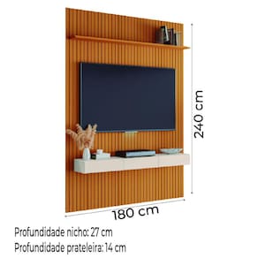O Painel Arbo 1,80x2,40m é perfeito para quem quer dar um toque mais elegante ao ambiente! Com estrutura resistente e detalhe ripado em design moderno, conta com uma prateleira e um nicho com duas portas basculantes, ideais para acomodar objetos de decorações e aparelhos eletrônicos e, além disso, pode ser combinado com outros móveis e acomoda TV de até 70 polegadas! MEDIDAS: A = 240 cm L = 180 cm P = 14 cm MEDIDAS PRATELEIRA: L: 155 cm P: 14 cm MEDIDAS NICHO: A: 14 cm L: 27 cm P: 154 cm MODELO: Painel para TV até 70 Polegadas com Nicho 1,80m Arbo EDN MARCA: EDN COR: Cedro/Off White PINTURA: UV MATERIAL: MDP/MDF PORTAS: 2 TIPO DE PORTA: Basculante PRATELEIRAS: 1 PRATELEIRA SUPORTA ATÉ: 2kg IDEAL PARA TV DE ATÉ: 70 polegadas DIFERENCIAL: Detalhe ripado PESO SUPORTADO: 50kg PESO: 87,75kg GARANTIA: 3 meses pelo fabricante A Esplanada Móveis se responsabiliza pela entrega dos produtos adquiridos até a porta de entrada ou portaria do endereço indicado, se a portaria do condomínio permitir, as entregas são efetuadas no piso térreo e é de responsabilidade do cliente a locomoção da mercadoria até seu apartamento ou casa. Confira as dimensões do produto e certifique-se de que estão adequadas aos elevadores, portas e corredores do local da entrega. Não fazemos a montagem, desmontagem do produto e/ou portas e janelas, transporte pela escada ou içamento pelo lado de fora do prédio. Não está incluso no serviço de entrega o deslocamento até o interior do apartamento, com ou sem elevador, ou deslocamento em locais de difícil acesso como escadarias. Ean: 7898732189680
