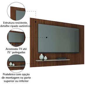 MODELO: Painel para TV até 75 Polegadas 1,80m Ripado com Prateleira França Caemmum