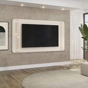 Características: Estrutura 100% MDF Acabamento em Pintura PU Frisos Decorativos e Luminárias LED Cantos arredondados Painel Suporta até 40Kg Ideal para TV até 75 Polegadas