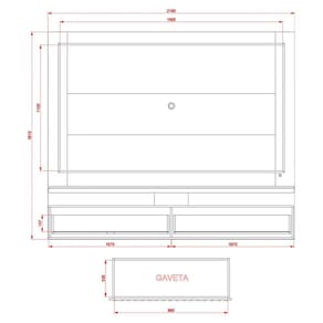 Um móvel sofisticado com uma composição de cores moderna, pintura imitando pedra, além de contar com a delicadeza dos acabamentos em Hot Stamping, quadro de metal, fitas de LED e gavetas com detalhes ripados.A Bancada Suspensa Gaia une todas essas características sem deixar de lado a funcionalidade. Com 2160mm de largura, ela possui 2 gavetas com corrediças telescópicas, painel que suporta TV’s de até 75” e chapas de 15, 25 e 40mm.