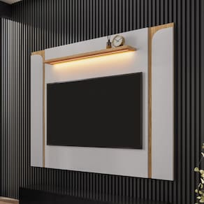 O(a) Painel para TV Até 75 Polegadas Maresias 1 Prateleira com Led Off White/Cinamomo - Móveis Bechara é produzido em MDF na escala de brilho Brilho, e possui um grau de dificuldade de montagem: Médio.