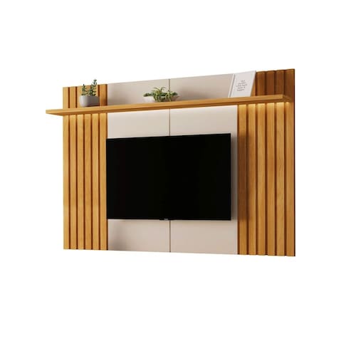 Este painel inovador inclui uma prateleira de 25 cm que pode ser posicionada tanto na parte superior quanto na inferior, oferecendo total flexibilidade no design de interiores da sua sala. Produto Montado: Sim Acabamento: Pintura Texturizada UV Acabamento da Prateleira: Pintura Texturizada UV Ambiente Principal: Sala de Estar codigo_ean: 7900288031815 Complexidade da Montagem: Baixa: pode ser montado por uma pessoa sozinha Cor: Carvalho Oro / Off-White Cor da Prateleira: Marrom Cor do Produto: Carvalho Oro / Off-White Cor Flex: não Cor Interna: Off-White Escala de Brilho: Semi-Brilho Escala de Brilho da Prateleira: Fosco Ideal para TVs até (Polegadas): 84 Informações Complementares: Acompanha réguas de fixação na parede Itens Inclusos: 1 Painel + prateleira. Linha ou Coleção: Painel Supreme Manual de Montagem e Instalação: https://product-hub-prd.madeiramadeira.com.br/865673/documents/22061cfa-11be-4036-938f-b71381a3714b1515886painelsupreme220.pdf Marca: Móveis Fazzio Material da Prateleira: MDP Material Principal: MDF/MDP Montagem Flex: não Necessita Montagem: Sim Origem do Produto: Nacional Peso: 52 kg Peso Máximo por Prateleira: 3 kg Possui Espelho: Não Possui iluminação: Não Possui Passa Cabos: Sim Possui Pés: Não Possui Portas: Não Possui Prateleiras: Sim Possui Tomada: Não Possui Vidro: Não Quantidade de Nichos: Não Recomendações de Uso, Manutenção e Limpeza: Usar pano levemente umedecido com agua Sistema de Montagem: Parafusos atarraxantes, sistema minifix e cavilhas. Suporte de TV Universal Incluso: Não Marca: Móveis Fazzio