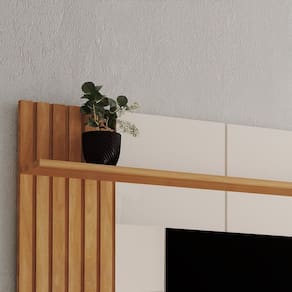 O Painel Supreme representa o que há de mais moderno e elegante em nossa linha de painéis para a sala. Suas laterais apresentam um design ripado, que está no auge das tendências atuais, criando um contraste marcante com os painéis centrais, que exibem uma elegante pintura em off-white.