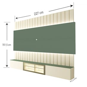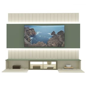 O(a) Painel para TV Até 85 Polegadas Soberano 3 Portas Ripado Autêntico 100% Mdf com Led Off White/Verde Floresta - Gelius é produzido em 100% MDF na escala de brilho Semi-Fosco, e possui um grau de dificuldade de montagem: Médio.