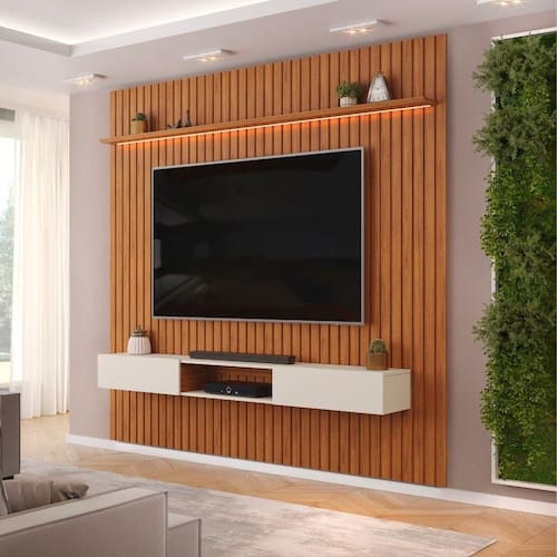 MODELO: Painel Para TV Até 90 Polegadas 2,75m Ripado Autêntico Com Led e Nicho Montreal