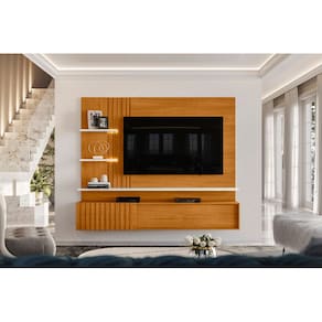 Painel para TV Atena 2,00m com Bancada Suspensa Cinamomo e Off White Liberty Móveis - Cinamomo | Off White