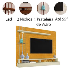 Estrutura em mdpProduzido em mdp de alta qualidade, este painel combina resistência, beleza e funcionalidade. Sua estrutura utiliza peças de 15 mm, além de prateleira superior de 25 mm, prateleira inferior de 30 mm e uma prateleira de vidro que acrescenta elegância ao design. A iluminação led integrada cria um efeito moderno e acolhedor, destacando objetos decorativos e valorizando o ambiente. Com dois nichos e duas prateleiras, o móvel oferece organização prática para eletrônicos, controles e acessórios do dia a dia. O acabamento em pintura uv garante proteção, brilho e maior durabilidade. Por ser suspenso, o painel otimiza o espaço, deixa o ambiente mais clean e acomoda TVs de até 55 polegadas com estilo, eficiência e praticidade.