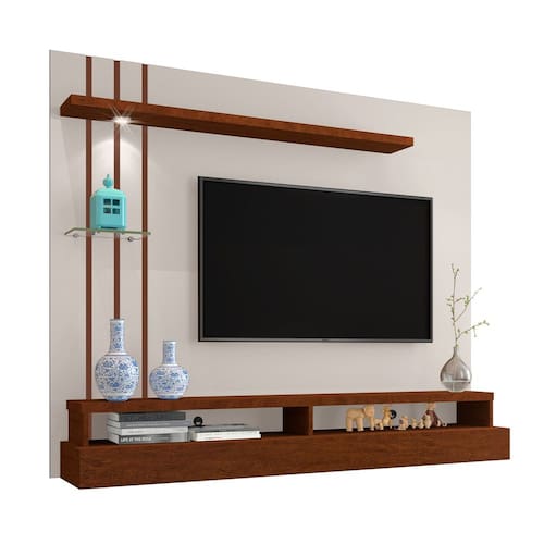 Produzido em mdp de alta qualidade, este painel combina resistência, beleza e funcionalidade. Sua estrutura utiliza peças de 15 mm, além de prateleira superior de 25 mm, prateleira inferior de 30 mm e uma prateleira de vidro que acrescenta elegância ao design. A iluminação led integrada cria um efeito moderno e acolhedor, destacando objetos decorativos e valorizando o ambiente. Com dois nichos e duas prateleiras, o móvel oferece organização prática para eletrônicos, controles e acessórios do dia a dia. O acabamento em pintura uv garante proteção, brilho e maior durabilidade. Por ser suspenso, o painel otimiza o espaço, deixa o ambiente mais clean e acomoda TVs de até 55 polegadas com estilo, eficiência e praticidade.