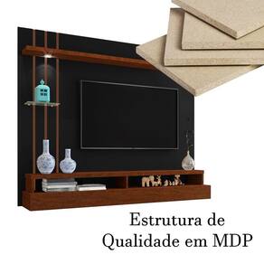 Painel Para Tv De Até 55 Suspenso éden Preto/canela Produzido em mdp de alta qualidade, este painel combina resistência, beleza e funcionalidade. Sua estrutura utiliza peças de 15 mm, além de prateleira superior de 25 mm, prateleira inferior de 30 mm e uma prateleira de vidro que acrescenta elegância ao design. A iluminação led integrada cria um efeito moderno e acolhedor, destacando objetos decorativos e valorizando o ambiente. Com dois nichos e duas prateleiras, o móvel oferece organização prática para eletrônicos, controles e acessórios do dia a dia. O acabamento em pintura uv garante proteção, brilho e maior durabilidade. Por ser suspenso, o painel otimiza o espaço, deixa o ambiente mais clean e acomoda TVs de até 55 polegadas com estilo, eficiência e praticidade. Dimensões do Painel para Sala de Estar até 55 polegadas: Altura: 135 cm Largura: 160 cm Profundidade: 30 cm