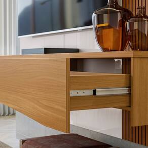 Equipado com 2 gavetas espaçosas, o painel oferece espaço ideal para organizar eletrônicos, acessórios e objetos decorativos, mantendo a sala organizada e elegante. Seu design moderno é versátil e se adapta a diferentes estilos de decoração.