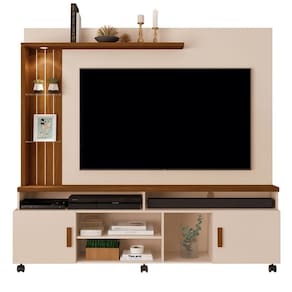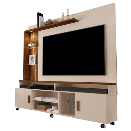 A combinação perfeita entre elegância e funcionalidade, o Painel Suspenso Oscar para TV até 65 polegadas foi projetado para transformar sua sala em um ambiente moderno e aconchegante. Ele conta com uma prateleira superior de 25 mm ideal para objetos decorativos, além de uma prateleira inferior de 30 mm que oferece espaço extra para eletrônicos. O conjunto inclui duas prateleiras de vidro que elevam o visual do móvel e trazem leveza ao design. Para completar, a luminária led integrada cria uma iluminação suave que destaca o painel e valoriza todo o ambiente. O produto possui ainda seis rodízios, sendo três cromados e três pretos, oferecendo mobilidade prática e discreta sem comprometer a estética.
