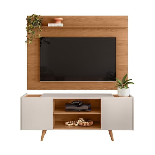 MDP 12/15 mm e HDF 3 mmPainel para TV Maia com Rack River Freijó/Off White Colibri Móveis