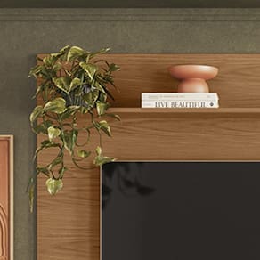 Painel com prateleira superior para objetos decorativos