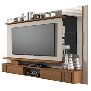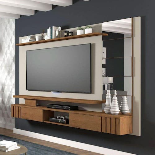 Painel para TV Murano 100% MDF Off White/Savana com Apliques de Espelhos.