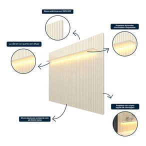 O Painel Nobre Ripado, chega para agregar beleza e elegância ao seu ambiente. Peça funcional e moderna que harmoniza facilmente com diversas decorações, dispondo de uma linda prateleira chanfrada com bordas laqueadas, o complemento possibilita duas opções de montagem, sendo elas na parte superior e inferior do produto. Com LED em luz quente com difusor e ripas autênticas, o Painel Nobre Ripado trará mais exclusividade e vivacidade para sua sala de estar.