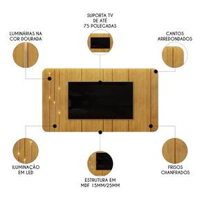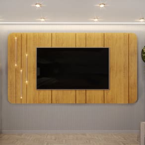 Se você busca sofisticação e elegância para sua Sala de Estar, este painel é uma excelente escolha. Com charmosos cantos arredondados e bordas chanfradas, ele cria um detalhe decorativo único, emoldurando o amplo espaço que acomoda TV de até 75 polegadas, garantindo o melhor entretenimento para sua família. Além disso, o Painel Suspenso conta com luminárias douradas, adicionando um toque extra de elegância ao conjunto. Produzido 100% em MDF, com madeira de reflorestamento. Este Painel para TV é cheio de benefícios, perfeito para dar aquele toque especial na sua sala, criando um ambiente moderno, aconchegante e repleto de classe.