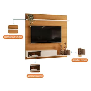 Painel para TV Suspenso Evo Ambiente Cinamomo Off White - HB Móveis - Marrom