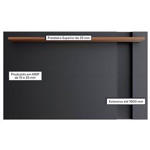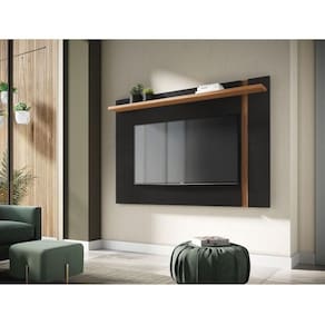 Painel para Tv Suspenso Extensivo Ambiente Leme Preto Acetinado Noce Milano - Colibri