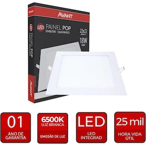 Características Principais: Marca: Avant Material: Poliestireno Potência: 24W Luminosidade: 1680 Lúmens Tensão: Bivolt Tipo de instalação: Embutir temperatura da Cor: 6500K Cor: Branco EAN: 7899452023452