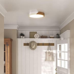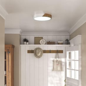Plafon Modaza Sublime Redondo, Branco Borda em Madeira
