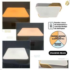O Plafon Wood Quadrado 30x30cm possui um acabamento branco com detalhe em madeira, com seu LED inteligente é possível trocar a temperatura de cor a cada liga/desliga. Seu design moderno e rustico trazendo um toque requinte no seu ambiente.