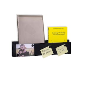 Para fixar fotos, recados, lembretes com ímãs. Além disso, tem um espaço atrás, que cumpre a função de prateleira, onde é possível colocar cadernos, livros. Este painel prateleira de aço foi projetado para fixar em paredes de alvenaria com os parafusos e buchas que acompanham o produto. Por ser de aço você também pode utilizar imãs. Produto fabricado no Brasil. A Coleção Básica é atemporal, minimalista e neutra. Minimalismo é simplificar a vida eliminando os excessos e mantendo apenas o que é essencial, sem abrir mão da funcionalidade e da praticidade. Dê de presente para o seu filho(a) organizar seu quarto. O caderno, agenda não acompanham o produto.
