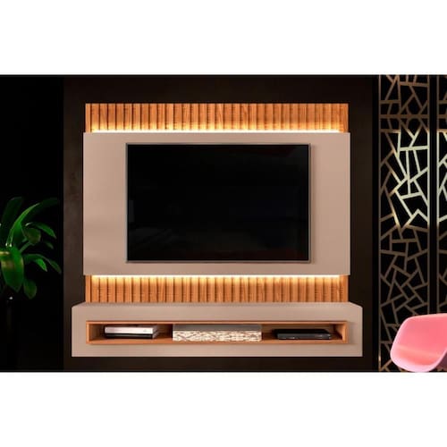 Painel Home p/ TV até 65 Pol Belutti Ripado c/ LED 180x165cm Griz/Carvalho - DJ Móveis