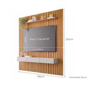 Painel Home p/ TV até 65 Pol Maragogi Ripado c/ 1 Porta e 2 Gavetas 185x220cm Nature/Off White - Permóbili