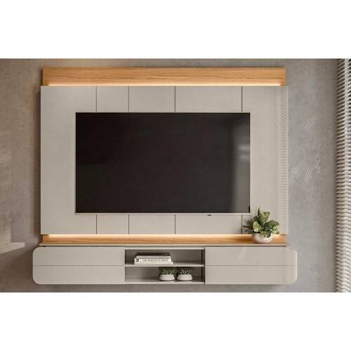 Painel Home p/ TV até 75 Pol Zurique c/ 2 Porta e 1 Prateleira 200x173cm Tauari/Off White Brilho - Linea Brasil Marca: Linea Brasil
