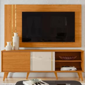 Design atual e detalhes sofisticados: Painel e Rack Bancada Cronos entregam organização e estilo em um conjunto que valoriza qualquer ambiente.