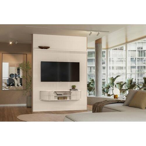 Painel+Rack Suspenso New Monte Carlo Para TV até 65 Polegadas - Calacata e Off White - Madetec