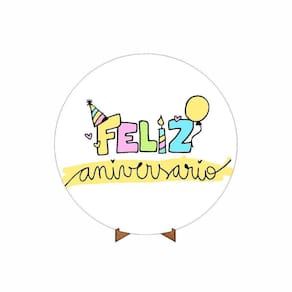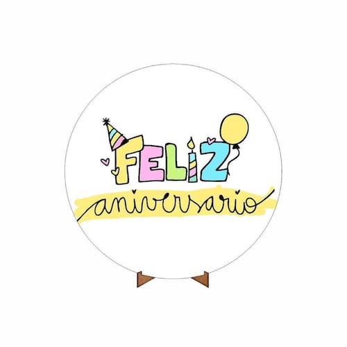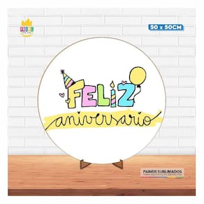 Painel redondo 3d feliz aniversario 50cm x 50cm suporte mdf