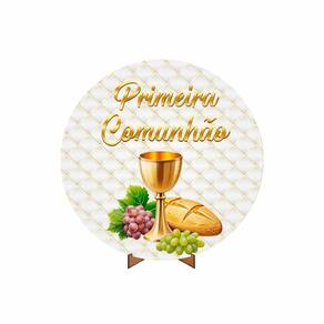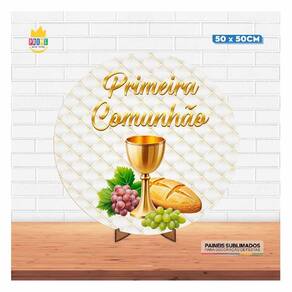 Painel redondo 3d primeira eucaristia em tecido 50cm com suporte mdf Estampa: primeira comunhão 01 Painel para decorações de festas de aniversário, pegue e monte, chá revelação, confraternização, painel sublimado, eventos e festas em geral, kit decoração festas,
