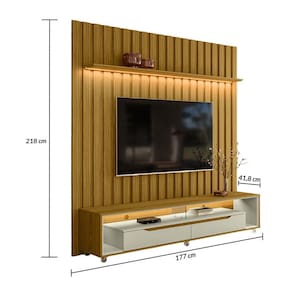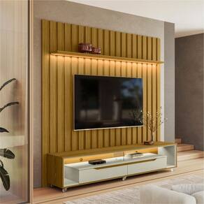 O Painel Ripado London 177cm é um produto com um design no estilo ripado. A sua estrutura é em MDF e MDP de 15 e 25 mm, possui uma prateleira superior de 25mm onde apresenta um led com luz quente deixando Painel iluminado e um passa fio para TV.