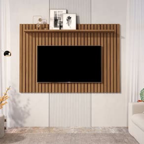 Painel Ripado com Prateleira Para Sala de TV 60" Pequena Classic Giga Moveis - Marrom Escuro