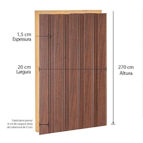 O painel ripado CASABLANCA é composto por barras de 270cm de comprimento, 1,5cm de espessura e 6cm de largura, área de cobertura de 5cm, pois uma barra sobrepõe a outra. Comercializado em pacotes com 4 unidades, o pacote (ou seja, as 4 barras juntas) correspondem a 0,54m², para ser montado como e onde quiser. 1 Pacote 0,54m²/ 2 Pacotes - 1,08m²/ 3 Pacotes - 1,62m²...