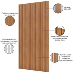 Apresentamos o incrível Painel Ripado Bairon 134x183, da Lyam Decor, uma peça versátil que transforma qualquer espaço com seu toque de sofisticação. Fabricado 100% em MDF, esse painel não somente proporciona resistência e durabilidade, como também se adapta perfeitamente ao estilo de vida de cada cliente, sendo totalmente componível de acordo com seu projeto pessoal.