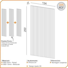 Além disso, é um modelo ideal para qualquer ambiente, já que harmoniza com salas de estar, quartos, corredores e halls de entrada. Seu design ripado moderno traz uma estética diferenciada, que enriquece a decoração e cria um clima aconchegante. As linhas geométricas criam profundidade e movimento, permitindo que você brinque com diferentes elementos decorativos, como quadros, plantas e objetos de arte.