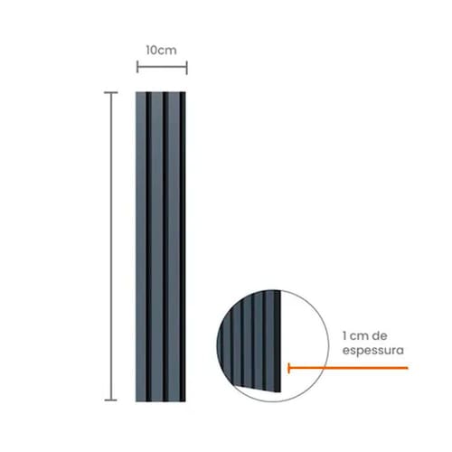 Painel Ripado EVA Laminado Autocolante 10cm Urban Valor Do Metro M Blue com Textura Azul Moderno, prático e versátil. O Painel Ripado EVA Laminado Autocolante 10cm Urban traz soluções práticas, modernas e inteligentes, transformando seus ambientes Este modelo pode ser instalado como painel ripado ou lambri que são as ripas com menor espaçamento . Você que decide, use sua imaginação Instalação rápida, fácil e sem sujeira. Produzido em borracha EVA, ecologicamente correto, podendo ser molhado sem correr o risco de apodrecer ou pegar cupim, autocolante com cola ultra resistênte, aceita tintas à base de água ou solvente, é flexível e se adapta facilmente a ambientes com curva. Faça você mesmo O Painel Ripado EVA Laminado Autocolante 10cm Urban permite instalação rápida, fácil e sem sujeira na obra, onde você mesmo pode fazer, 97% dos clientes realizam a própria instalação Milhões de metros já foram vendidos entre milhares de clientes atendidos em todo o Brasil Características Gerais do Produto: Benefícios do produto: Autocolante, flexível, não pega mofo nem pragas, sem sujeira e fácil instalação. Dimensões AxLxP CM : 10 x 1 x 10 Metros Produzido em: Borracha EVA e Material Autocolante Cola de Ultra Resistência Cor acabamento: Blue com Textura Azul : 3 anos junto ao fabricante Aplicação: Interno ou Abrigado Peso: 0,180 Kg/ M Acompanha o produto: 10 Metros de Ripado 01 Manual do Produto : 3 anos junto ao fabricante Marca: Não Informado
