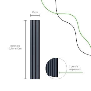 Painel Ripado Laminado de EVA 10cm de Largura Cor Blue Linha Urban Metragem: 10M Perguntas frequentes do produto 1 - Onde achar as medidas do produto Todos os produtos possuem essas informações nas imagens. Suba um pouco e você verá informações como: Altura, espessura e as principais características do produto. 2 - Do que o produto é feito Todos os nossos produtos são feitos em uma borracha sintética EVA específica para a decoração. O material possui alta resistência e flexibilidade, se adaptando a qualquer tipo de parede. 3 - Como é o processo de colagem Não usamos fita dupla-face. Desenvolvemos uma cola específica para a decoração, mais forte e resistente, que garante a fixação do seu produto por anos e anos, sem dor de cabeça. A cola é protegida por uma película. Basta você retirar essa película e aplicar na sua parede. O modelo de sobrepor é o único que não é autocolante mas sua fixação também é bastante fácil . Superfícies com tintas brilhosas, acetinadas, resinas ou vernizes precisam ser lixadas superficialmente no local onde o produto será aplicado para uma melhor aderência da cola. Ainda assim, ficam sujeitas a necessidade de reforço da instalação com cola de contato cola de sapateiro ou silicone. Em locais úmidos, papéis de parede, azulejos e porcelanatos, banheiros, áreas externas, tintas com brilho, resinas, impermeabilizantes, vernizes, pvc, grafiatos e texturas, a instalação poderá precisar de reforço com cola de contato ou silicone. 4 - Como limpar Não amarela A limpeza pode ser feita com pano molhado e uma solução como detergente neutro ou saponáceo cremoso. Por ser um emborrachado resistente à água, você pode molhá-lo na hora da limpeza, sem problema. Fique tranquilo, ele não vai amarelar nem sofrer com cupins ou outras pragas. 5 - Tem outras cores Posso pintar Trabalhamos apenas com a cor branca natural da matéria prima , com acabamento fosco. A pintura é recomendada, apesar de não ser obrigatória. Você pode pintar com tintas a base de água ou solvente as mesmas que já utilizadas nas paredes . 6 - Posso instalar em áreas externas e banheiros Sim, você pode utilizá-lo sem problemas. Nestes casos, apenas recomendamos o reforço com nossa cola de contato ou silicone por conta da umidade. Não recomendamos a instalação dentro do box do banheiro. 7 - Como fazer os cortes das quinas Com o nosso kit instalação vendido separadamente você realiza os cortes em 45º, facilitando o processo. Também temos vídeos de orientação para lhe ajudar ao longo da instalação. O que ele é: Soluções autocolantes com qualidade, instalação rápida, fácil e sem sujeira. Tão fácil que você mesmo pode aplicar o produto e nós te ajudamos a fazer isso . Os Painéis Ripados Autocolantes são nossos Produtos mais procurados. Pelo fato de conseguir transformar por completo um ambiente e se tornar o protagonista dele, os painéis são nossos líderes de venda Este modelo pode ser instalado como Painel Ripado, Lambri que são as ripas com menor espaçamento e até Rodapé ou Roda teto, você que decide O produto: Somos uma fábrica e nosso material é produzido aqui mesmo, no Brasil. Utilizamos uma borracha sintética EVA específico para a decoração em nossa produção. Nosso produto é autocolante, flexível se adapta facilmente em ambientes com curva e você mesmo consegue instalar A matéria prima é resistente à água e super fácil de limpar. Com o tempo desenvolvemos uma cola fruto de inovação tecnológica , específica para a decoração. Ela garante maior fixação e durabilidade. Não utilizamos fita dupla-face. Diferente de outros materiais, o nosso é flexível e se adapta a paredes curvas com facilidade. Ele também é enviado em rolos e é leve , o que facilita o seu recebimento e armazenamento.