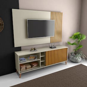 Este elegante painel é o complemento perfeito para a Rack Bancada Luara, formando um conjunto impecável que vai transformar a sua sala de estar. Com uma extensa prateleira, você terá espaço de sobra para exibir sua coleção de livros, objetos de decoração ou para acomodar dispositivos eletrônicos.