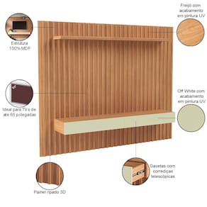 O Painel Ripado para TV Baraka 223cm, da Lyam Decor, realmente se destaca como uma escolha certa para quem busca um móvel que una beleza e funcionalidade. O design ripado é uma tendência atemporal, conferindo um caráter elegante que nunca sai de moda. Além disso, suas linhas verticais criam uma sensação de amplitude e movimento no ambiente, tornando-o mais dinâmico.
