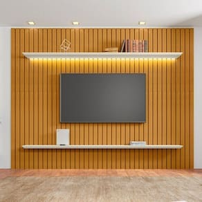 Transforme sua sala em um ambiente sofisticado com o Painel Ripado Roma para TVs de até 75 polegadas.