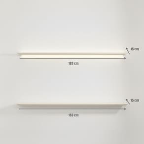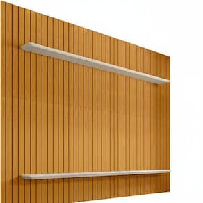 1x Kit 2 Prateleiras com Led para Painel Ripado em Mdf com Pintura Uv Roma Cinamomo/Off White Largura: 183 cm Altura: 2,5 cm Peso: 10 kg Profundidade: 15 cm Necessita Montagem: Sim