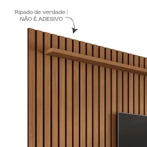 CARACTERÍSTICAS TÉCNICAS - Produzido em MDF - Pintura UV com acabamento fosco - Modelo Ripado (NÃO É ADESIVO) - Possui passa fios - Acompanha KIT de montagem e manual para auxílio - Prateleira superior - Ideal para TV até 75 polegadas
